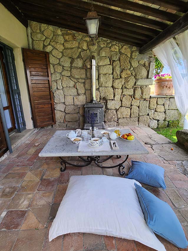 Questa romantica stanza, molto luminosa, è dotata di un portico privato (di circa 20mq) che affaccia sul giardino e sulla piscina, in cui è possibile fare colazione o vivere un’esperienza culinaria romantica, in completa intimità.